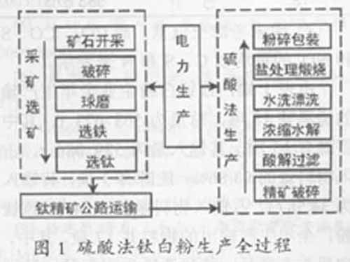 鈦白粉的生產(chǎn)過程是資源和能源轉(zhuǎn)化為產(chǎn)品并排放廢棄物的“工業(yè)代謝”過程。在這一過程中,輸入各種資源和能源;輸出主產(chǎn)品、各種副產(chǎn)品和廢棄物。對于不同的鈦白粉生產(chǎn)工藝過程,輸入和輸出不同,其物質(zhì)代謝不同,對環(huán)境造成的影響也不同。