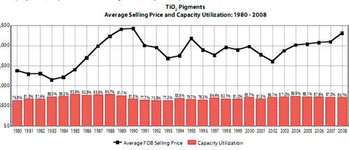 2008年,中國人口已經(jīng)突破了13.3億,鈦白粉的消費(fèi)量則達(dá)到了124萬噸,人均消費(fèi)量為0.93千克。在過去的20年時(shí)間中,中國鈦白粉工業(yè)完成翻天覆地的產(chǎn)業(yè)改革,產(chǎn)能迅速增長。甚至西方的鈦白粉學(xué)者和專家顧問,也很難預(yù)測中國近期鈦白粉的市場需求和產(chǎn)能發(fā)展。