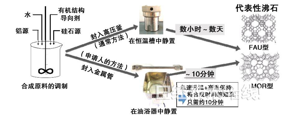 東京大學的研究小組以前一直在推進相關(guān)研究,通過在油浴器中急速加熱導熱性出色的金屬管來縮短沸石的合成時間。在這一過程中研究小組發(fā)現(xiàn),只要在有機結(jié)構(gòu)導向劑遇熱變性(=分解)前在超高溫條件下形成結(jié)晶,便可在極短時間內(nèi)合成沸石。