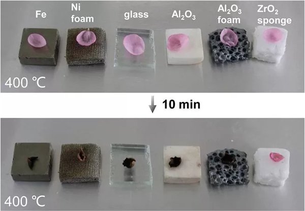 工程師們用幾種不同的陶瓷材料來(lái)制備這種特殊的海綿陶瓷,包括二氧化鈦和二氧化鋯。眾所周知,這些陶瓷材料具有良好的絕熱性。接下來(lái),研究人員決定測(cè)試它們的耐熱性。