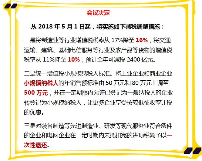 而就在3月28日,國務院將稅率簡并至16%、10%兩檔!“500萬元小規(guī)模標準”將成為以后稅務籌劃點!此次增值稅稅率改革,將再送4000億減稅大禮包。這是粉體行業(yè)喜迎3800億減稅大禮包后的又一重大利好消息。