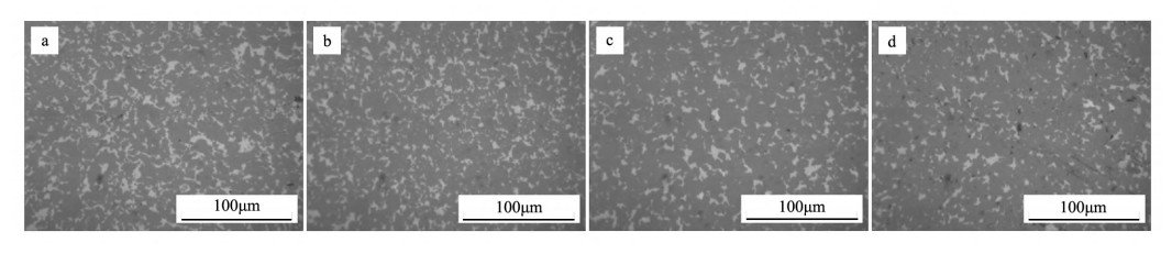 在不同升溫速率下制備的碳化硅陶瓷的金相組織圖(a) 0.8℃/min;(b)1.0℃ /min;(c)1.2℃/min;(d)1.4℃/min.