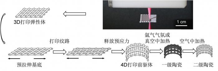 與3D打印相比,4D打印對材料有更高要求。此前大多采用水凝膠等聚合物作為4D打印“墨水”,但水凝膠聚合物應(yīng)用范圍有限。陶瓷前驅(qū)體材料應(yīng)用廣泛,但較難發(fā)生自變形,限制了其在4D打印中的發(fā)展。