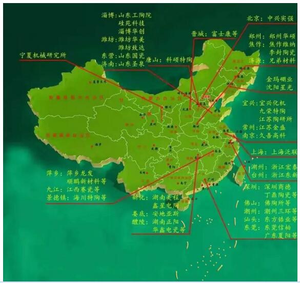 先進(jìn)結(jié)構(gòu)陶瓷產(chǎn)業(yè)主要分布區(qū)域