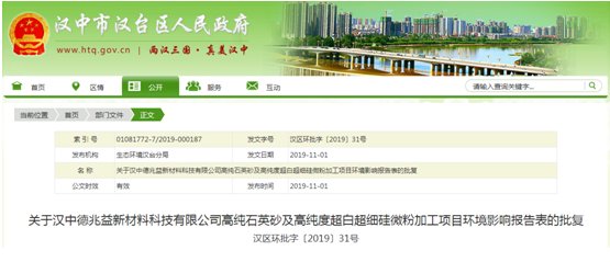 日前,從陜西漢中市生態(tài)環(huán)境局獲悉,漢中德兆益新材料科技有限公司擬實(shí)施“高純石英砂及高純度超白超細(xì)硅微粉加工項(xiàng)目”。