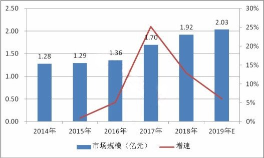數(shù)據(jù)顯示,僅計算包含市場流通的單陶瓷膜材料,我國陶瓷膜材料的市場規(guī)模從2014年的1.28億元上升到2018年的2.03億元。