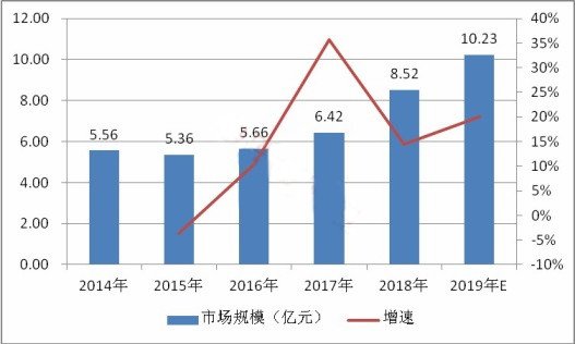 而陶瓷膜系統(tǒng)集成市場規(guī)模從2014年的5.56億元上升到2018年的8.52億元。