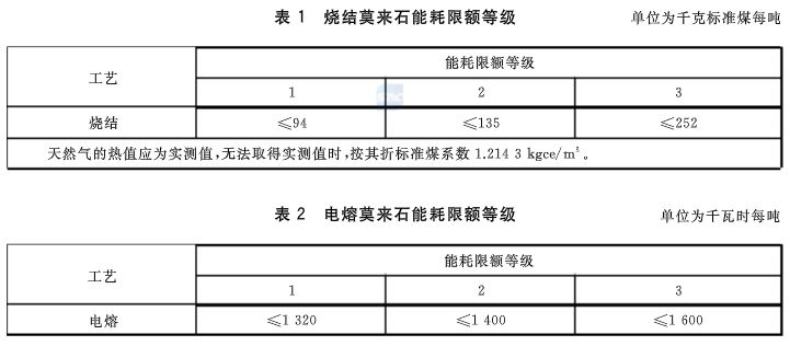 莫來石生產(chǎn)工藝分為燒結和電熔。燒結莫來石單位產(chǎn)品能耗限額等級見表1。電熔莫來石單位產(chǎn)品能耗限額等級見表2。