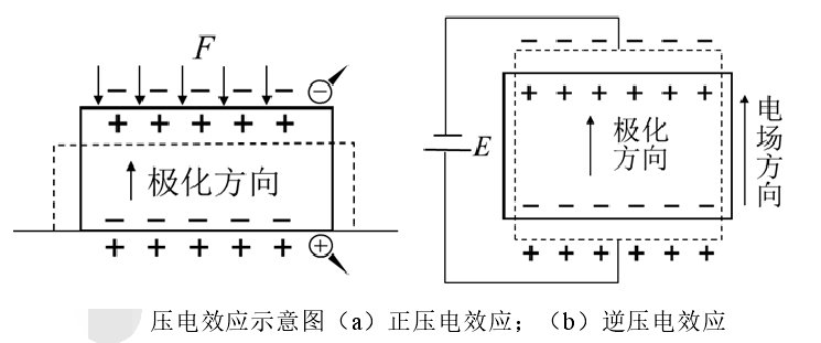 正壓電效應(yīng)的微觀本質(zhì)是應(yīng)力下材料內(nèi)電偶極矩發(fā)生了方向和大小的變化,同時(shí)材料表面感應(yīng)生成等量電荷以抵消電偶極矩的改變。壓電效應(yīng)具有可逆性,逆壓電效應(yīng)是壓電材料內(nèi)電偶極矩在外加電場(chǎng)下產(chǎn)生拉伸或壓縮,宏觀上表現(xiàn)為通過(guò)外加電場(chǎng)產(chǎn)生的電致伸縮現(xiàn)象。正逆壓電效應(yīng)均是電能和機(jī)械能的耦合轉(zhuǎn)換過(guò)程。