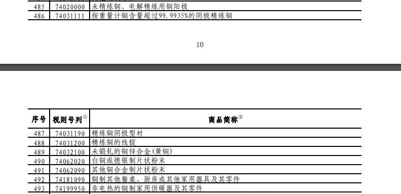廢銅、陰極銅以及其他銅材的進(jìn)口關(guān)稅稅率保持不變。