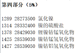 此次涉及鎳產(chǎn)品如下:
