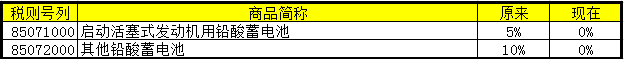 相關(guān)征稅產(chǎn)品清單中,其他鉛酸蓄電池以及啟動(dòng)活塞式發(fā)動(dòng)機(jī)用鉛酸蓄電池暫不加征關(guān)稅。