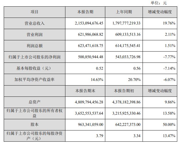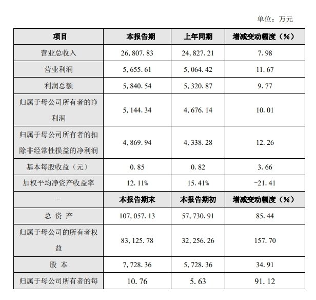 國瓷材料2019年度主要財務(wù)數(shù)據(jù)和指標(biāo)