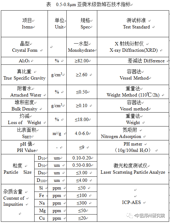 中國粉體網訊 中鋁鄭州有色金屬研究院有限公司通過自主創(chuàng)建的MTCG技術,實現(xiàn)了勃姆石形貌、粒度可控的水熱法制備,成功開發(fā)出0.5-0.8μm的亞微米級勃姆石(牌號:LSB-2-2)新產品產業(yè)化技術,具有一條年產1500噸超細勃姆石生產線。