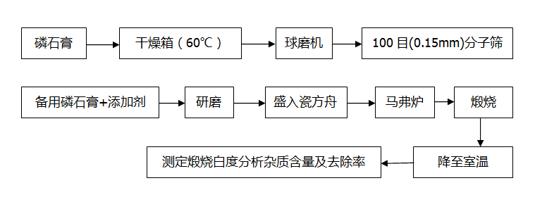 方官濤等在《磷石膏煅燒過(guò)程中添加劑對(duì)其雜質(zhì)和白度影響》一文中,對(duì)磷石膏進(jìn)行球磨、篩分,考察了煅燒溫度、煅燒時(shí)間、添加劑量對(duì)磷石膏中鐵、有機(jī)碳的脫除情況及磷石膏白度的影響進(jìn)行試驗(yàn)。