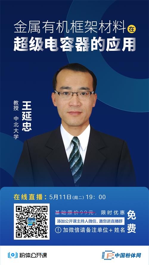 然而,MOF的低導(dǎo)電性和不完全暴露的活性位點一定程度上限制了其電化學(xué)性能。2021年5月11日下午19:00,中國粉體網(wǎng)旗下平臺粉體公開課邀請到中北大學(xué)王延忠教授作《金屬有機框架材料在超級電容器的應(yīng)用》報告,屆時王延忠教授將介紹MOFs材料用作超級電容器電極材料的研究進展,詳解課題組在2D MOFs材料的制備,導(dǎo)電性能調(diào)控和電化學(xué)性能研究方面取得的成果,以及與活性炭材料為負極組裝非對稱型電容器,驗證了MOF基復(fù)合材料實際應(yīng)用的電化學(xué)性能。