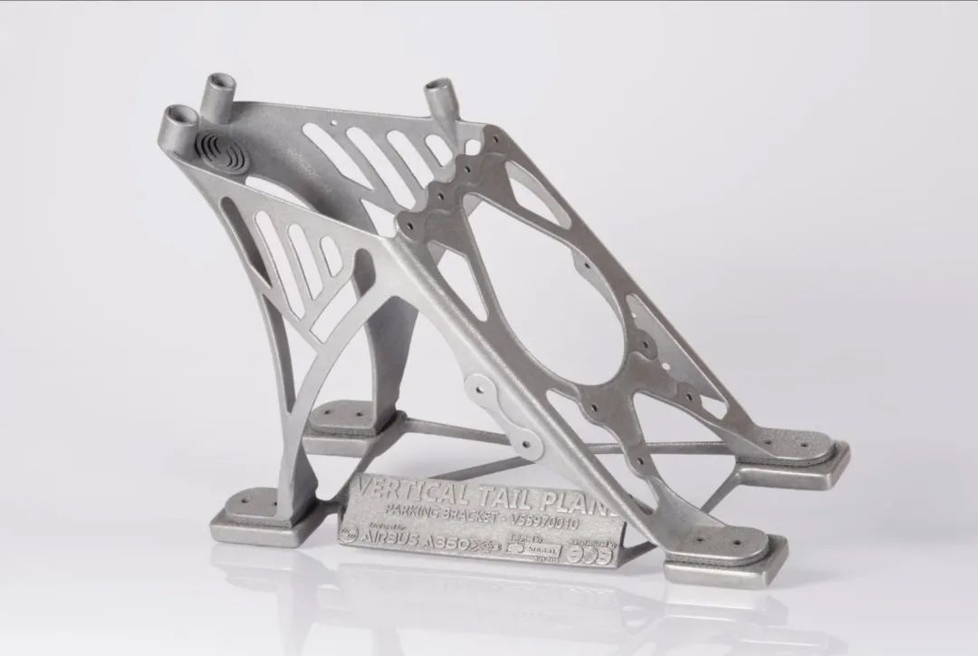 ▲用EOS 3D打印機制作的垂直穩(wěn)定器前撐桿上的A350鈦合金電纜支架,圖片由EOS提供