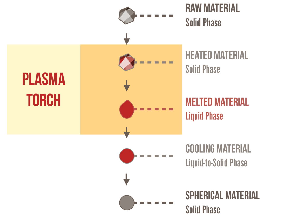 球化(SphEroIdiZation):將粉碎、霧化和海綿化的粉末轉(zhuǎn)為高度致密的球形粉末顆粒,包括進料顆粒的加熱和熔化,然后在受控條件下冷卻。