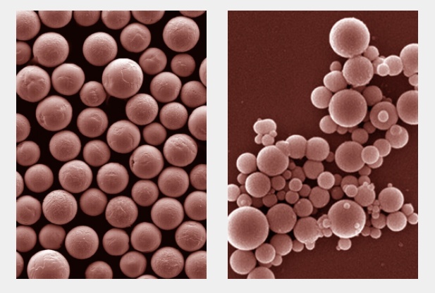 △Tekna提供不同金屬粉末:(左)球形粉末;(右)納米粉體