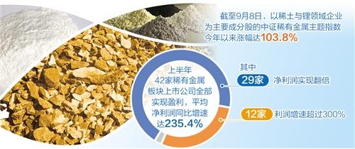 中國(guó)粉體網(wǎng)訊 近幾個(gè)月,A股稀有金屬板塊呈現(xiàn)上漲行情。截至9月8日,以稀土與鋰領(lǐng)域企業(yè)為主要成分股的中證稀有金屬主題指數(shù)今年以來(lái)漲幅已達(dá)103.8%。