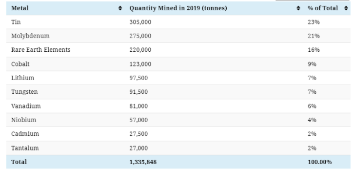 2019年,工業(yè)和技術(shù)金屬占所有開采金屬的6%。它們是如何分解的?