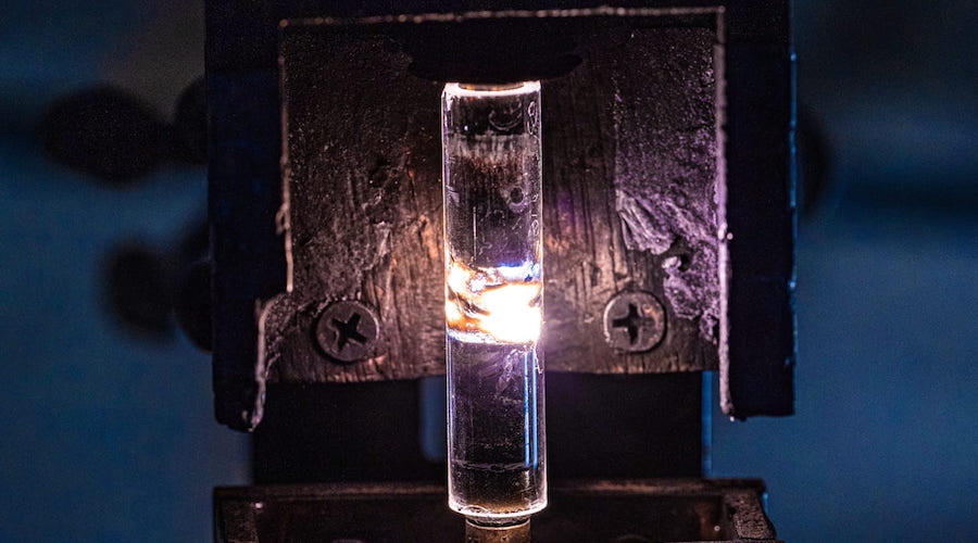 金屬通過閃光焦耳加熱與碎電路板中的其他部件分離后,在小瓶底部沉淀。