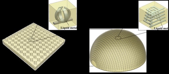 該研究將3D打印的靈活性與液態(tài)金屬的易流動、易填充性相結(jié)合,開辟了一類復(fù)雜微結(jié)構(gòu)制造新方法,為結(jié)構(gòu)-功能一體化柔性電子、軟體機器人、天線等富含多材料、跨尺度結(jié)構(gòu)的制造奠定了基礎(chǔ),也為拓展超材料應(yīng)用范圍(如3D光學(xué)/電磁隱身衣、智能蒙皮、超透鏡等)提供了新的解決方案。