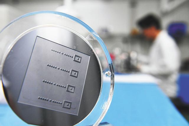 4英寸玻璃穿孔晶圓。記者 徐旻昊 攝