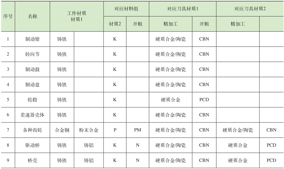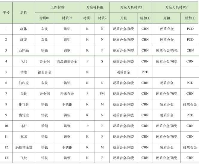 發(fā)動(dòng)機(jī)零部件材質(zhì)與刀具材質(zhì)選取對(duì)應(yīng)