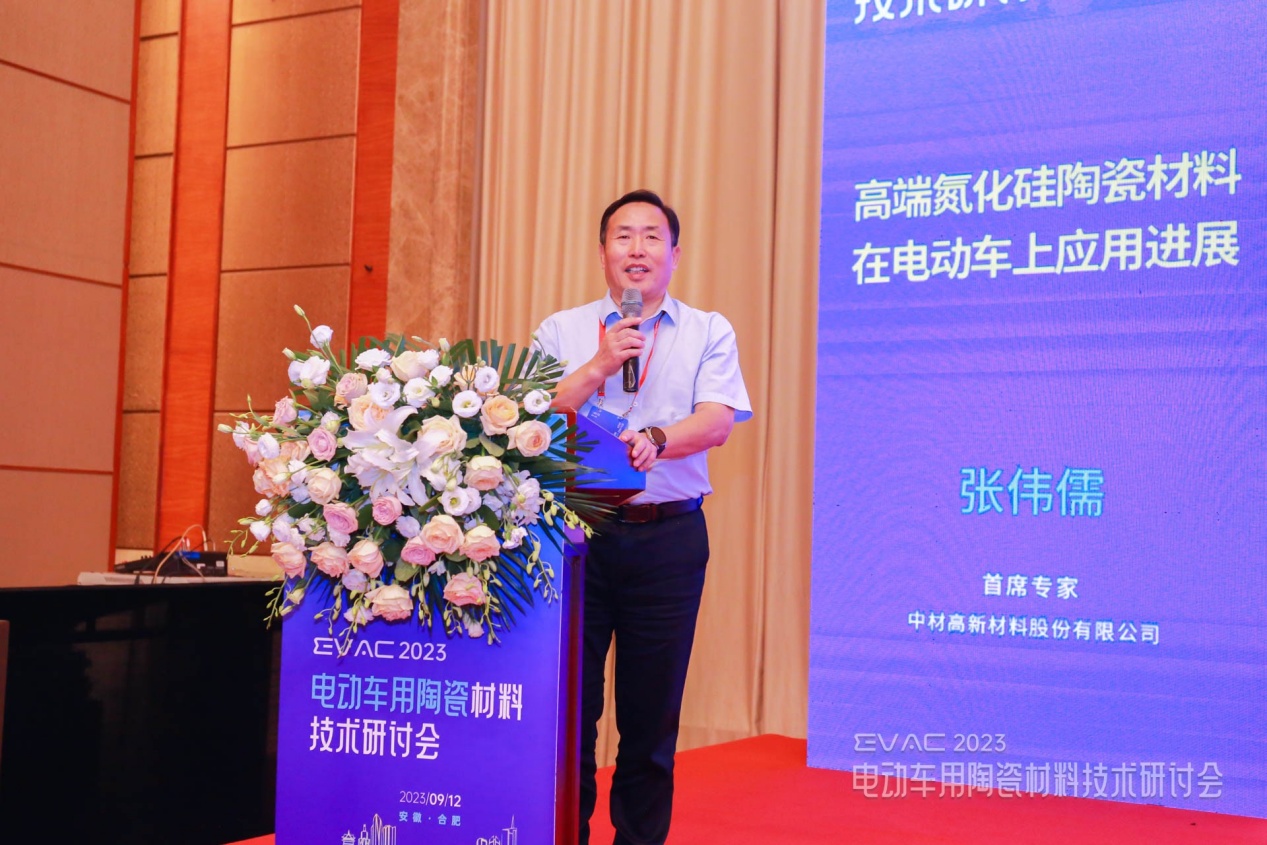 中材高新材料股份有限公司首席專家張偉儒作《高端氮化硅陶瓷材料在電動車上的應(yīng)用進(jìn)展》報告