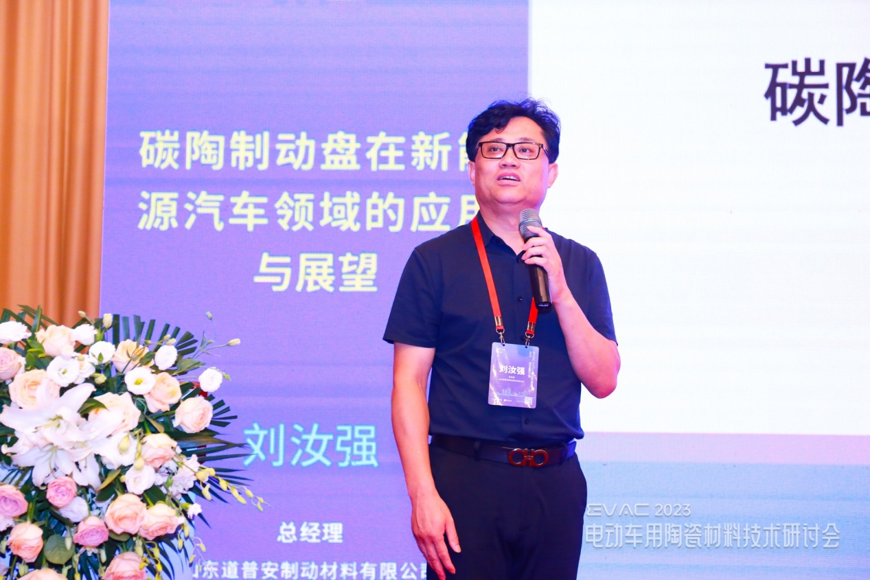山東道普安制動材料有限公司劉汝強(qiáng)總經(jīng)理作《碳陶制動盤在新能源汽車領(lǐng)域的應(yīng)用與展望》報告