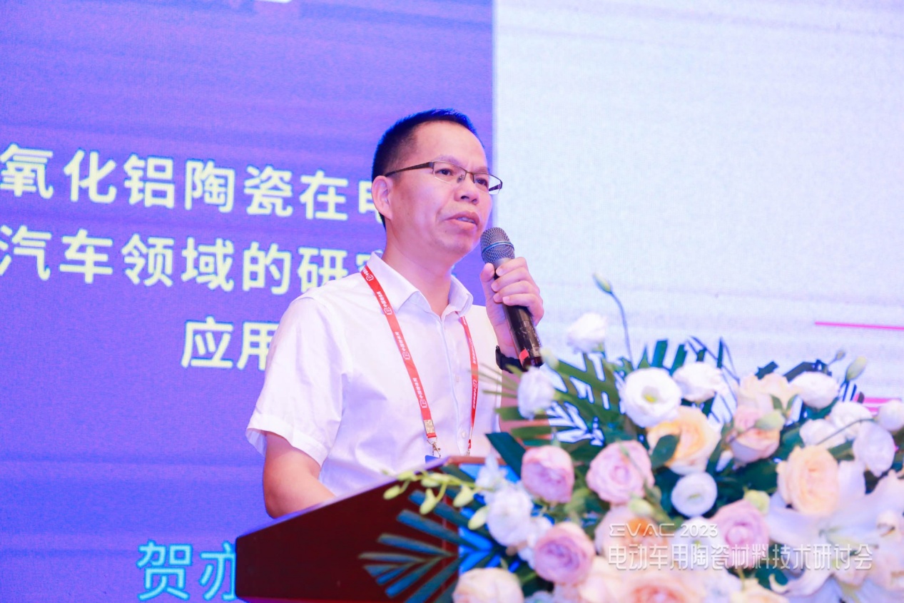 湖南省美程陶瓷科技有限公司副總賀亦文作《氧化鋁陶瓷在電動汽車領(lǐng)域的研究與應(yīng)用》報告