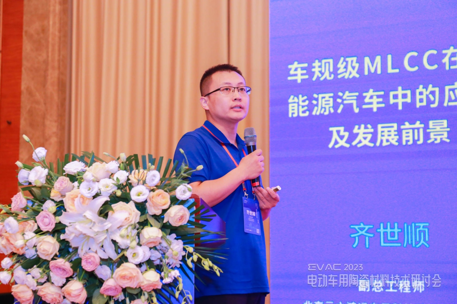 北京元六鴻遠(yuǎn)電子科技股份有限公司副總工程師齊世順作《車規(guī)級MLCC在新能源汽車中的應(yīng)用及發(fā)展前景》報告