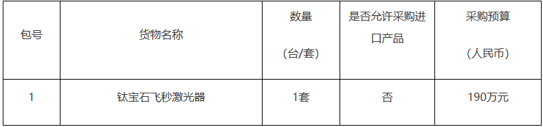 項(xiàng)目名稱:中國(guó)科學(xué)院上海應(yīng)用物理研究所鈦寶石飛秒激光器采購(gòu)項(xiàng)目
