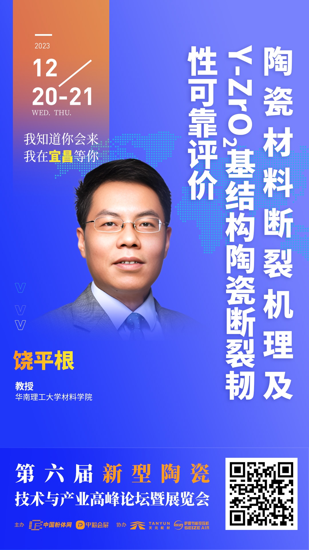 中國粉體網(wǎng)將于2023年12月20-21日在湖北宜昌舉辦“第六屆新型陶瓷技術(shù)與產(chǎn)業(yè)高峰論壇”,屆時(shí)華南理工大學(xué)饒平根教授將帶來《陶瓷材料斷裂機(jī)理及Y-ZrO2基結(jié)構(gòu)陶瓷斷裂韌性可靠評價(jià)》的報(bào)告。本報(bào)告將介紹陶瓷材料的斷裂機(jī)理,并解析結(jié)構(gòu)陶瓷脆性斷裂的原因。