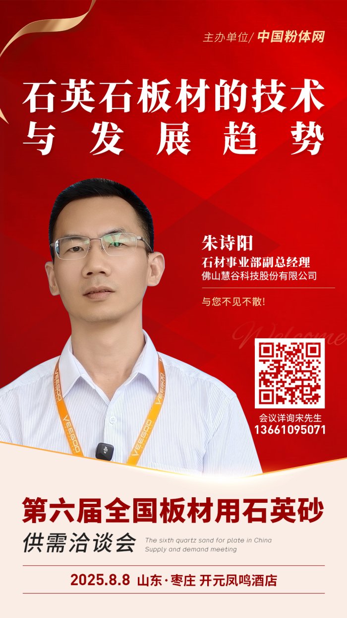 2025年8月8日,由中國粉體網(wǎng)主辦的第六屆全國板材用石英砂供需洽談會(huì)將在山東棗莊召開,佛山慧谷科技股份有限公司石材事業(yè)部副總經(jīng)理朱詩陽將做《石英石板材的技術(shù)與發(fā)展趨勢(shì)》的報(bào)告,圍繞行業(yè)痛點(diǎn)深入解析未來技術(shù)方向,誠邀行業(yè)同仁共探發(fā)展新機(jī)。