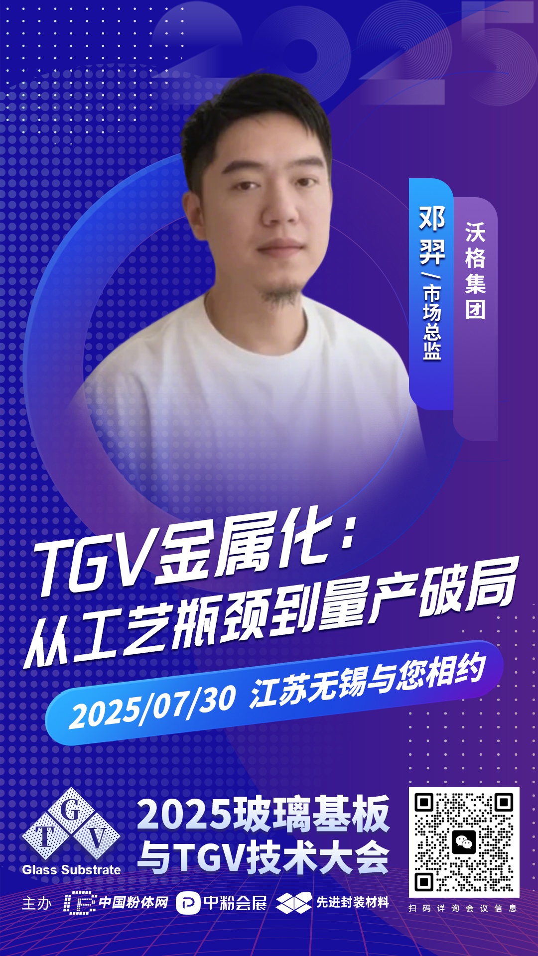 為強化行業(yè)信息交流,中國粉體網將于2025年7月30日在無錫舉辦2025玻璃基板與TGV技術大會。屆時,沃格集團市場總監(jiān)鄧羿將作題為《TGV金屬化:從工藝瓶頸到量產破局》的報告,解析玻璃基板對有機基板的替代邏輯,挖掘全玻璃多層互聯結構在高頻信號傳輸中的優(yōu)勢,分享TGV在微流控、Mini LED等新興領域的商業(yè)化潛力。