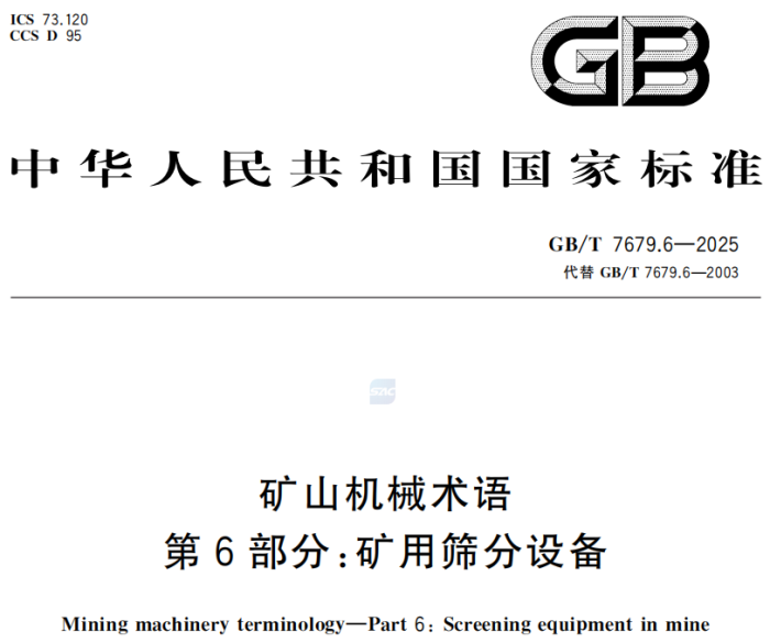 據(jù)中國(guó)粉體網(wǎng)獲悉,《礦山機(jī)械術(shù)語(yǔ)第6部分:礦用篩分設(shè)備》(GB/T7679.6-2025)于2025年5月30日發(fā)布,并將于2025年12月1日實(shí)施。本文件起草單位包括:洛陽(yáng)礦山機(jī)械工程設(shè)計(jì)研究院有限責(zé)任公司、浙江武精機(jī)器制造有限公司、中信重工機(jī)械股份有限公司、洛陽(yáng)正方圓重礦機(jī)械檢驗(yàn)技術(shù)有限責(zé)任公司、中實(shí)洛陽(yáng)重型機(jī)械有限公司、中國(guó)重型機(jī)械研究院股份公司。