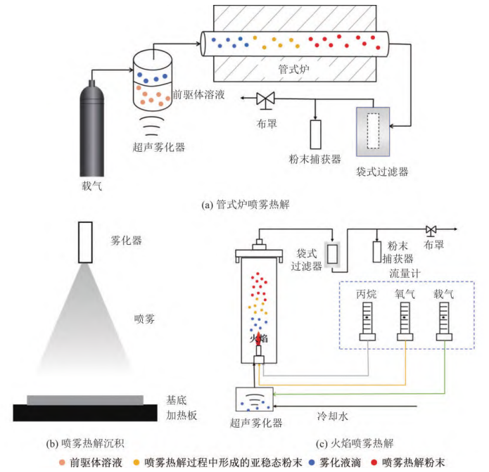 噴霧熱解技術(shù)就是一種利用高溫場(chǎng),通過對(duì)液體前驅(qū)體進(jìn)行霧化、干燥和熱解制備粉體的技術(shù)。