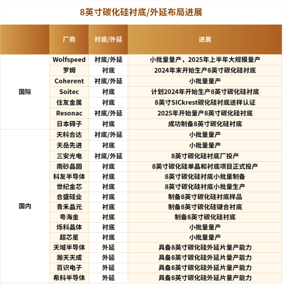 在產(chǎn)品尺寸上,相比6英寸SiC市場(chǎng),8英寸更是碳化硅產(chǎn)業(yè)的未來增長點(diǎn),國廠商也在加速布局。