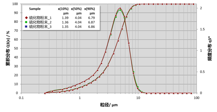 固態(tài)電解質(zhì)硫化物粉末3次干法測試粒度分布