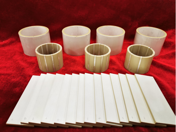 高性能壓電材料方面,江瓷電子通過工藝改造,引入流延工藝,研發(fā)織構陶瓷材料,實現(xiàn)晶粒定向排列,把傳統(tǒng)PZT陶瓷的壓電性能提高了兩到三倍。已完成方片、圓管、圓環(huán)等多樣式產品研制,并研制出10+cm大尺寸圓管等創(chuàng)新產品。材料性能提升使得產品可進一步應用于探測、檢測等場景當中。