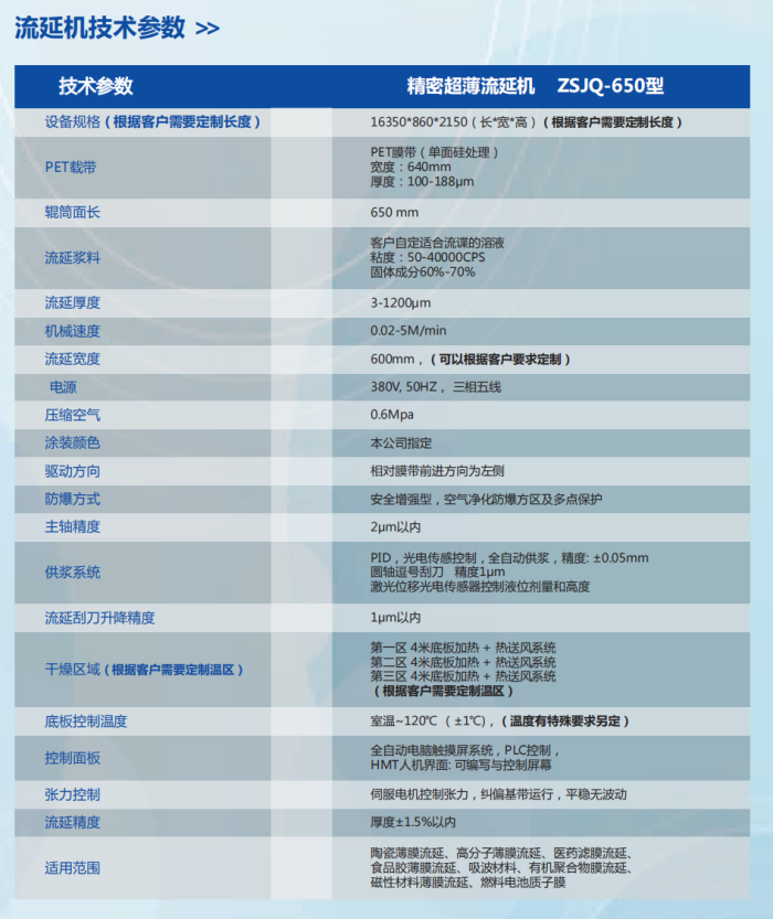 公司主要產(chǎn)品有流延機(jī)(涂布機(jī)),49/S電子晶體外殼,石油抽油泵柱塞及金屬表面處理。公司研發(fā)設(shè)計(jì)的流延機(jī)引進(jìn)國外先進(jìn)技術(shù),其性能、要求、技術(shù),外觀、環(huán)保、節(jié)能在國內(nèi)屬領(lǐng)先水平,質(zhì)量好,性價比高。對于流延機(jī)的研發(fā)制造始終以高標(biāo)準(zhǔn)、高技術(shù)、高門檻的研究創(chuàng)新精神去突破。嚴(yán)謹(jǐn)專注的態(tài)度去優(yōu)化性能,客戶至上的態(tài)度去解決痛點(diǎn),開拓創(chuàng)新的態(tài)度去攻克技術(shù)難關(guān),追求卓越的態(tài)度去提升工藝精度。研發(fā)生產(chǎn)的流延機(jī)完全可以流延固態(tài)電池膜、液流電池膜、氫燃料電池膜、氧化鋁﹑氮化鋁﹑氧化鋯﹑鐵氧體﹑防彈衣膜、吸波波材料、橡膠薄膜、石墨烯、有機(jī)聚合物膜、金屬粉濾膜、封裝陶瓷類產(chǎn)品和各種過濾膜并銷往國內(nèi)各企業(yè),贏得了不錯的好評。