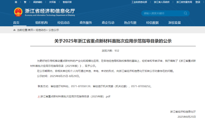 中國粉體網(wǎng)訊 為更好地引導和推動重點新材料的產(chǎn)業(yè)化和規(guī);瘧茫,浙江省經(jīng)濟和信息化廳正式發(fā)布《重點新材料首批次應用示范指導目錄(2025年版)》。該目錄中,三項氧化鋁陶瓷材料成功入選。