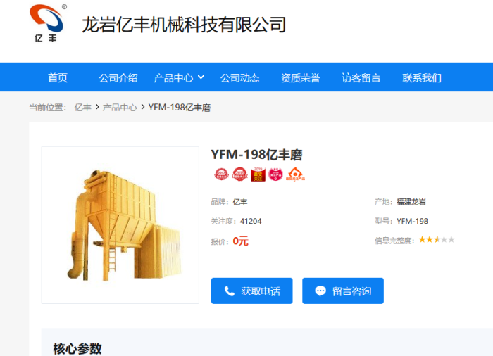 依托粉享通的建站體系,龍巖億豐構(gòu)建了 7×24 小時不間斷的產(chǎn)品展示陣地。無論是主打產(chǎn)品超細粉碎機的核心參數(shù)、氣流分級機的工作原理,都能通過圖文、視頻等形式直觀呈現(xiàn)。