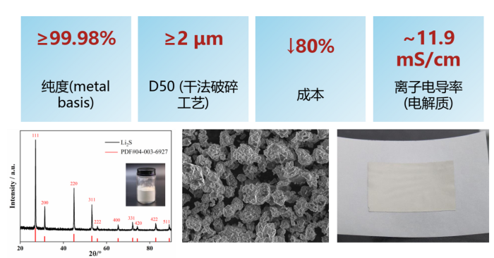 目前做的硫化鋰產(chǎn)品粒徑3微米以下,可以直接混料做硫化物電解質(zhì),不用再進(jìn)一步粉碎。純度99.9%以上,目前在建規(guī);漠a(chǎn)線。