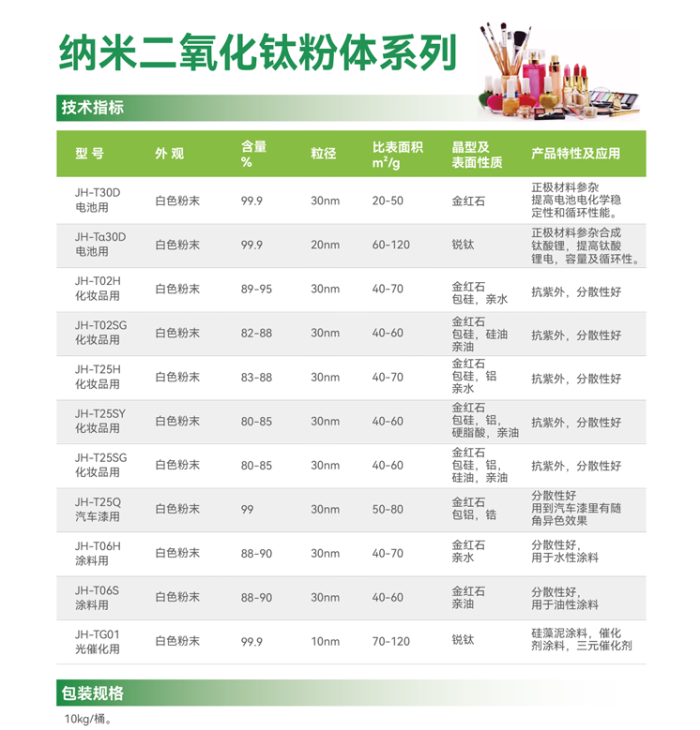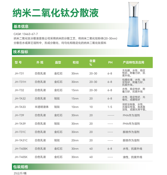 粒徑均勻,分散性好,不團(tuán)聚,藍(lán)相好。無毒,屏蔽紫外線能力和優(yōu)異的透明性等等。