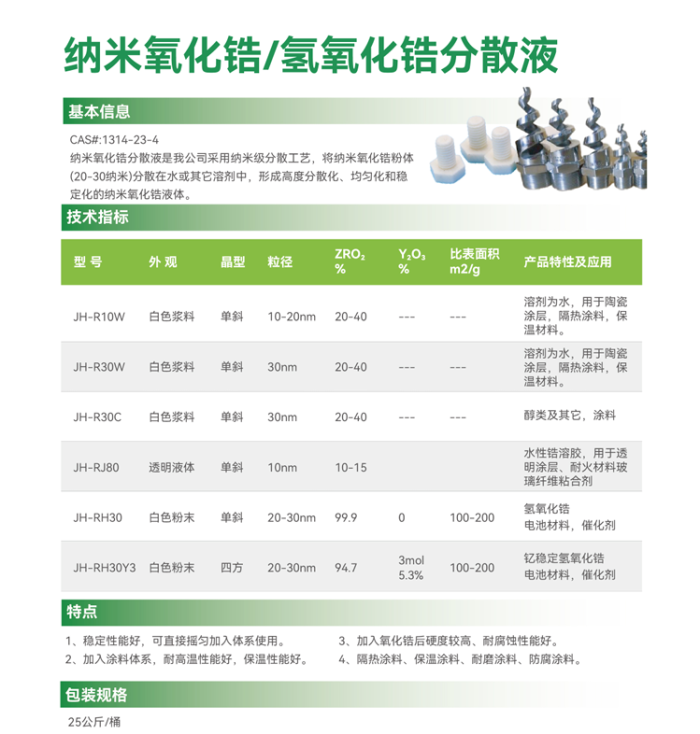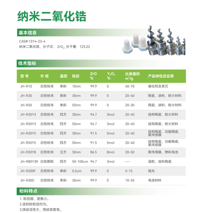 納米氧化鋯應(yīng)用催化劑,陶瓷、涂料、耐火材料、燃料電池等。