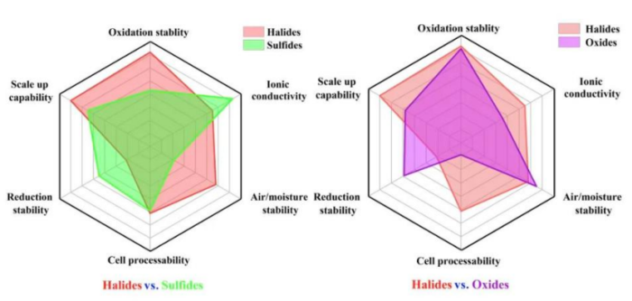 硫化物、氧化物和鹵化物固態(tài)電解質(zhì)的性能對(duì)比圖