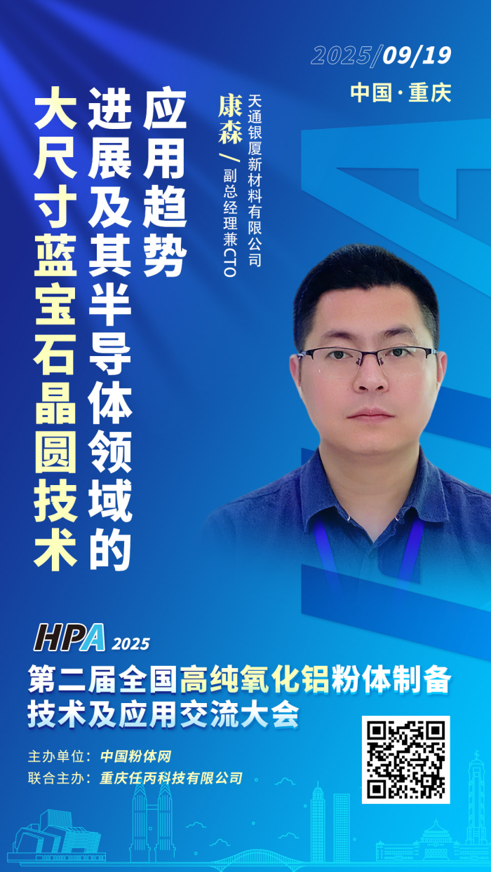 天通銀廈新材料有限公司成立于2014年,是天通控股股份有限公司的全資子公司,公司是用改良泡生法制造大尺寸藍寶石晶體的行業(yè)龍頭企業(yè)。9月19日,中國粉體網(wǎng)將在中國·重慶舉辦2025第二屆全國高純氧化鋁粉體制備技術及應用交流大會,屆時,天通銀廈新材料有限公司副總經(jīng)理、技術負責人康森將帶來題為《大尺寸藍寶石晶圓技術進展及其半導體領域的應用趨勢》的報告。